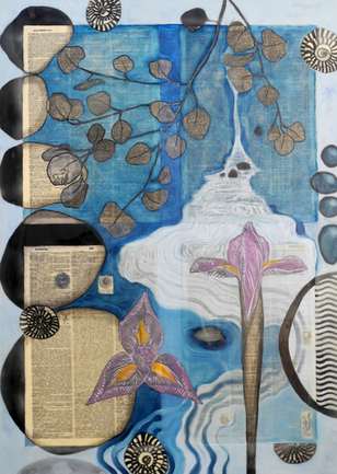 encaustic, oil, dictionary pages, ink, cold wax, on panel